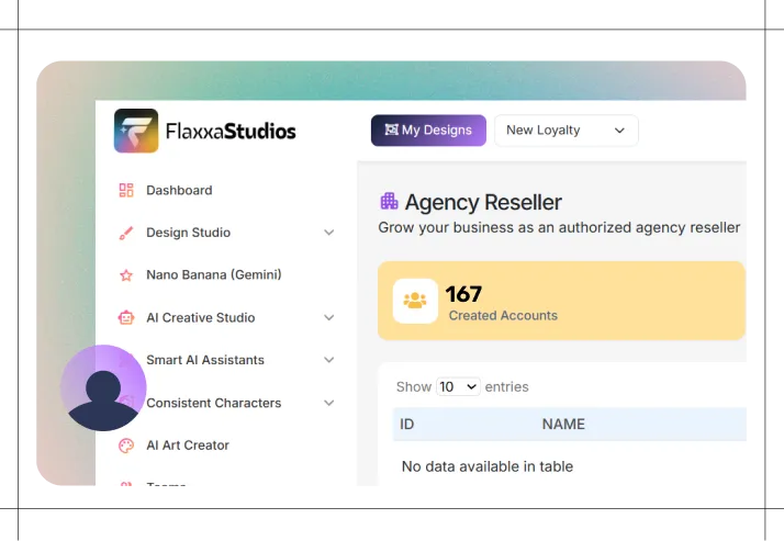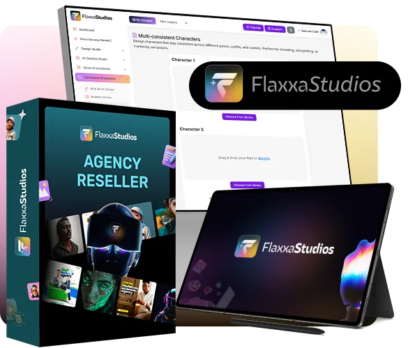 Turn Flaxxa Studios into your own professional design business. Sell AI-generated logos, social media content, product shots, storybooks, and complete brand identities to clients without limitations—and keep 100% of the revenue.